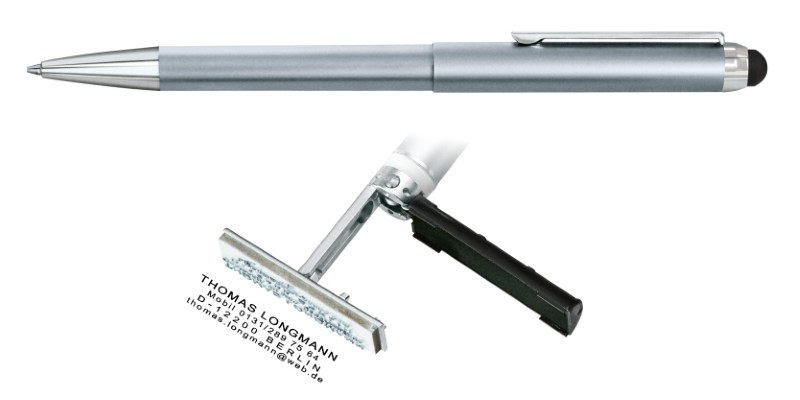 Propisovací tužka HERI Diagonal s vestavěným razítkem až pro 3 řádky textu.